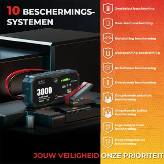 - Veilig in gebruik: Bescherming tegen overladen, kortsluiting, omgekeerde polariteit en extreme temperaturen — gebruiksvriendelijk en veilig voor jou en je voertuig.