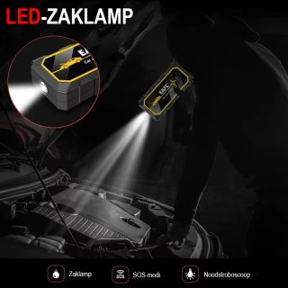 - Multifunctioneel: 5-in-1: jumpstarter, powerbank, 360° verlichting, zaklamp, SOS- en stroboscoopfunctie.