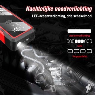 - Multifunctioneel: werkt als jump starter én als powerbank (20000 mAh) voor telefoons, tablets en camera’s.