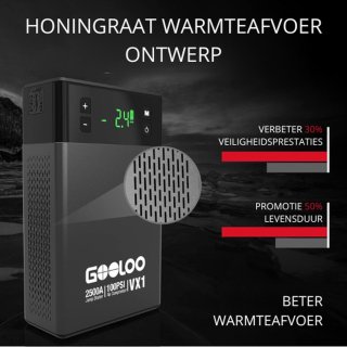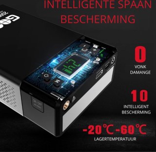 - Honingraat-warmteafvoer voor betere koeling en langere levensduur van de jumpstarter.