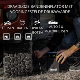 - Digitale LCD: bekijk batterijstatus en bandenspanning direct en precies; stel de gewenste druk in en de pomp stopt automatisch.