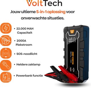 VoltTech 22.000 mAh Jumpstarter — Startkracht, powerbank en noodlamp in één