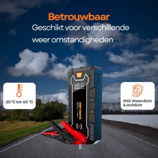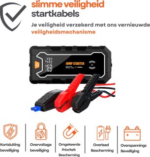- Inclusief: opbergtas, startkabels, zaklampfunctie, handleiding (Nederlands & Engels)